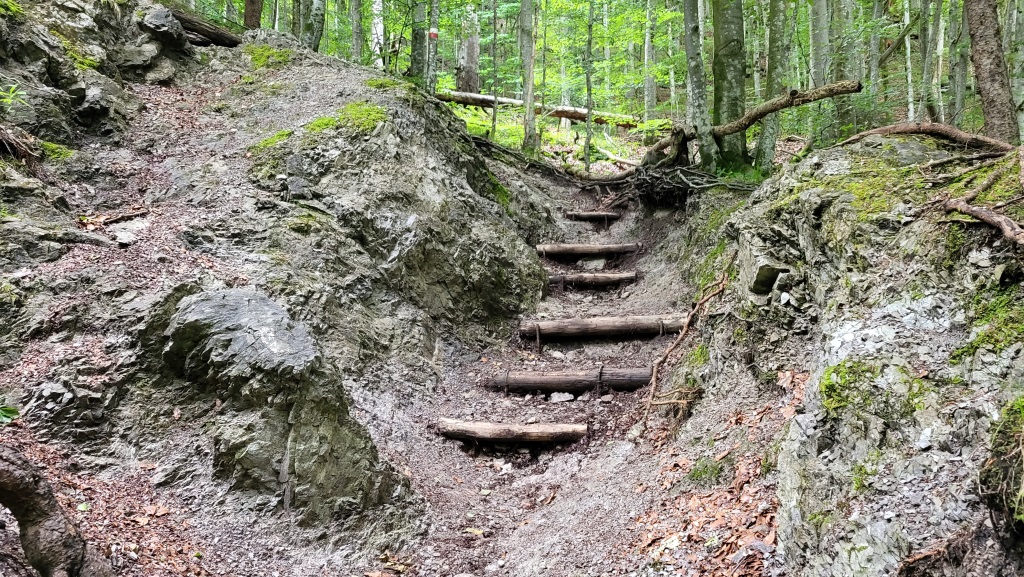 steil führt ein gut ersichtlicher Waldpfad aufwärts