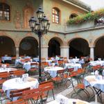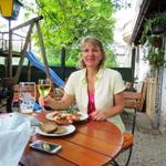 wir haben Hunger und kehren im Wirtsgarten "beim Metzgerwirt Weideochs" ein