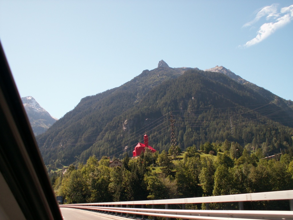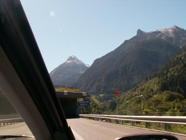auf der Autobahn bei Wassen. Was ist das dort in rot?