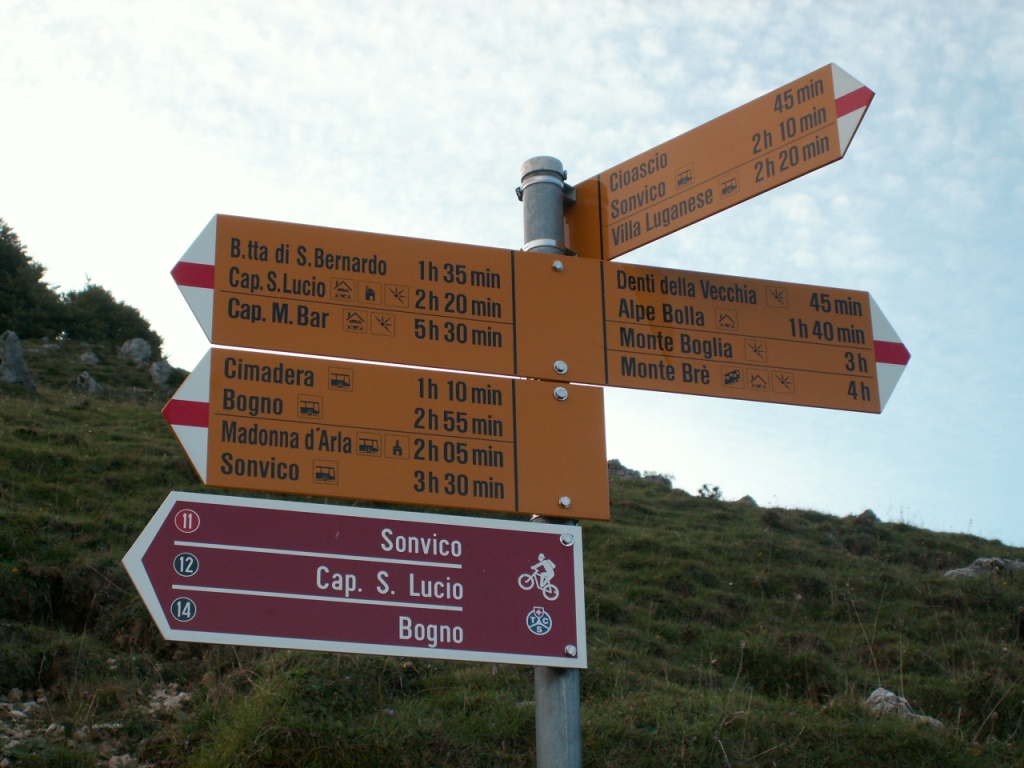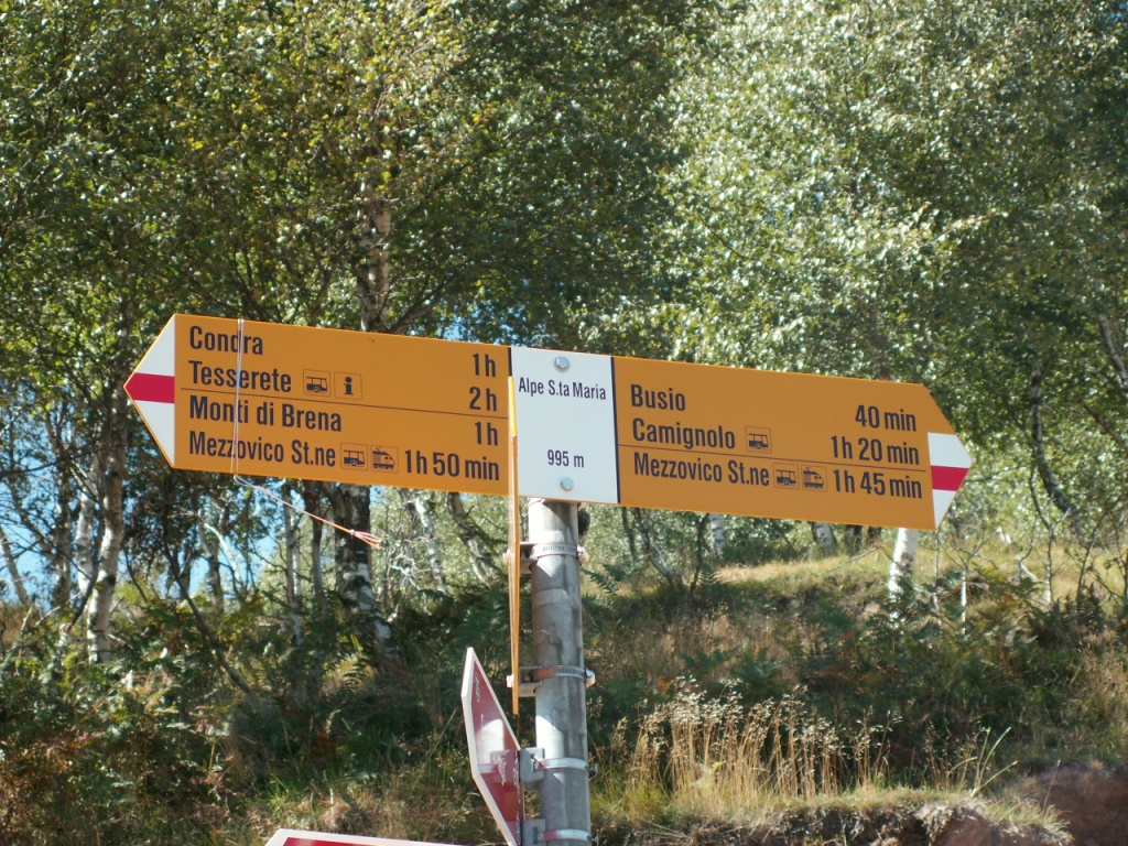 Wegweiser bei der Alpe Santa Maria