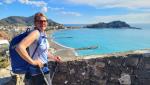 am Strand von Sestri Levante angekommen blicken wir zurück und hinauf zum Hügel mit der Kirche St.Anna Datum 13.06.2023