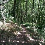 über einen Steineichenwald geht es weiterhin abwärts. Obwohl wir im Schatten laufen, ist es unglaublich heiss