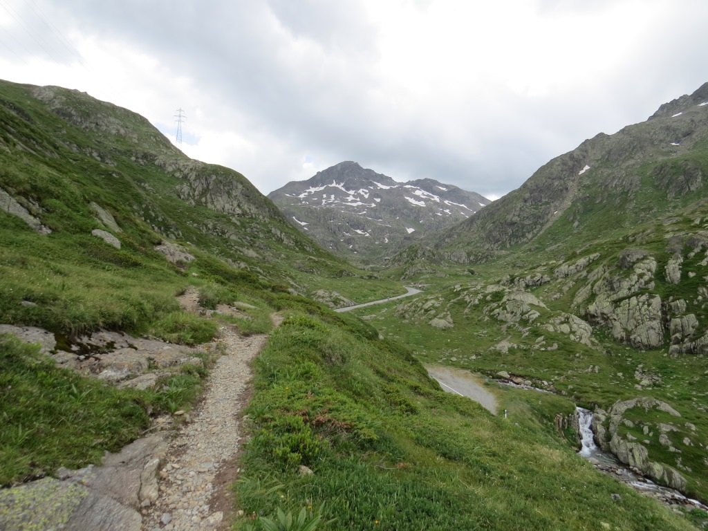 wir haben die kleine Ebene hinter uns gelassen und überqueren bei L'Hospitalet die Passstrasse Datum 28.07.2016