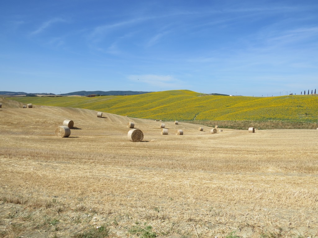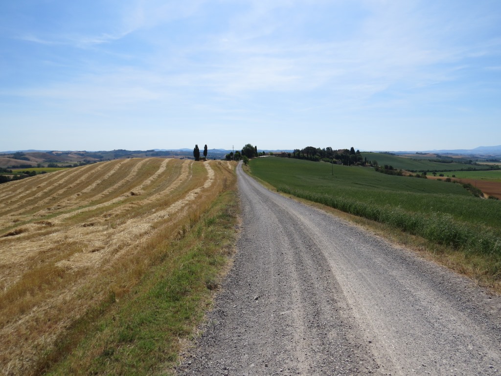 dia Via Francigena führt uns kilometerlang an Kornfelder entlang