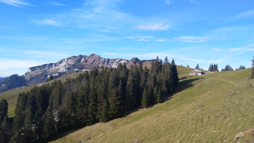 rechts von uns der Gulme. Dort oben waren wir schon mit den Schneeschuhen