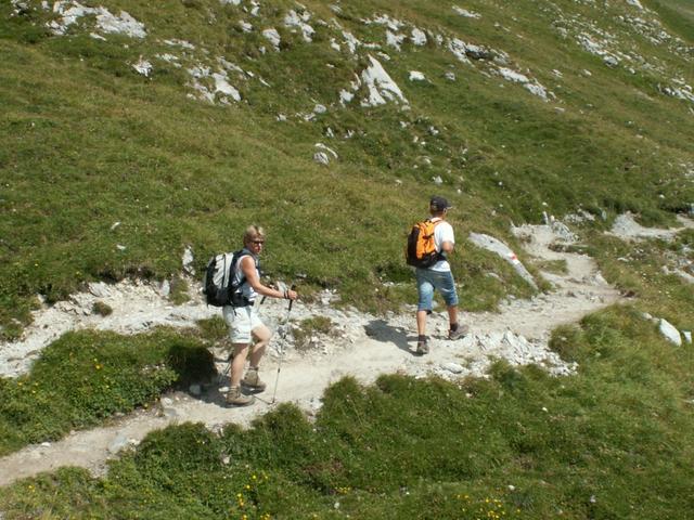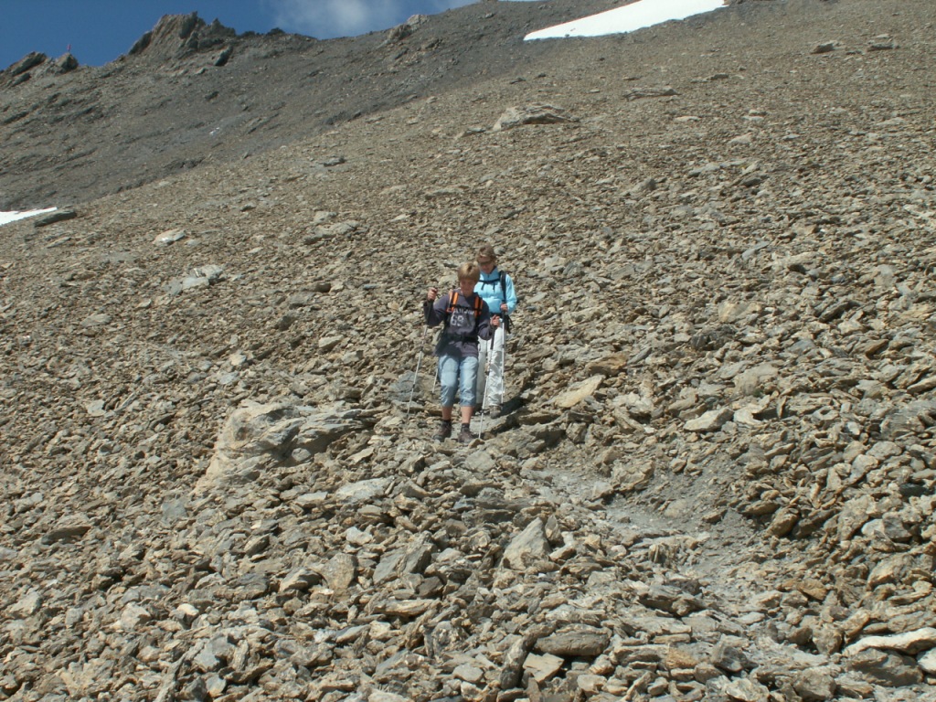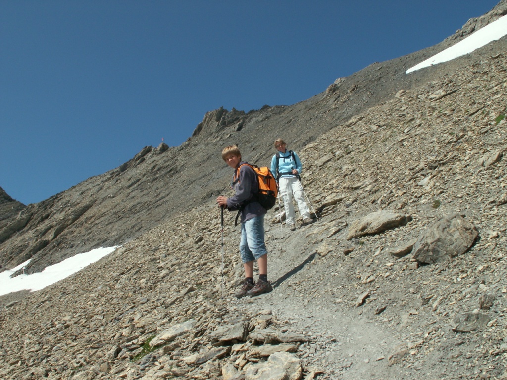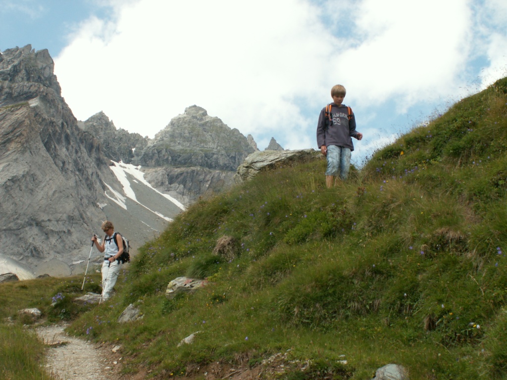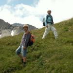 Göttibub Riccardo und Mäusi beim Abstieg vom Segnespass