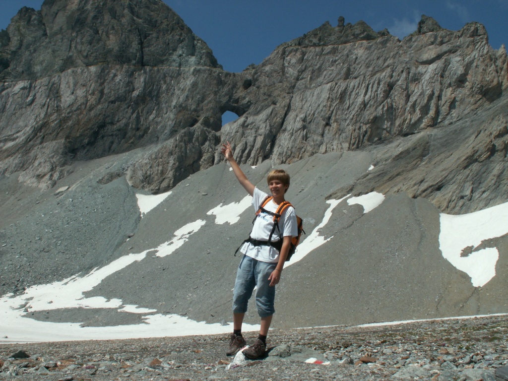 Göttibub Riccardo erreicht als erster der Segnespass 2627 m.ü.M.