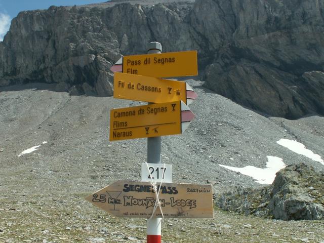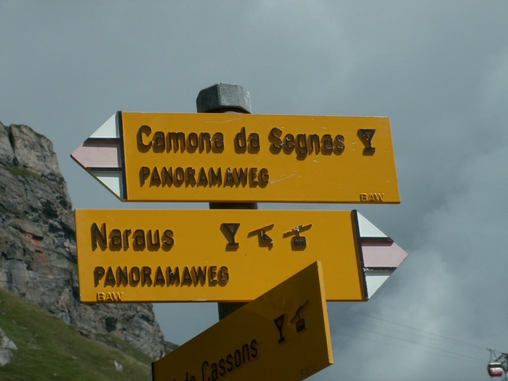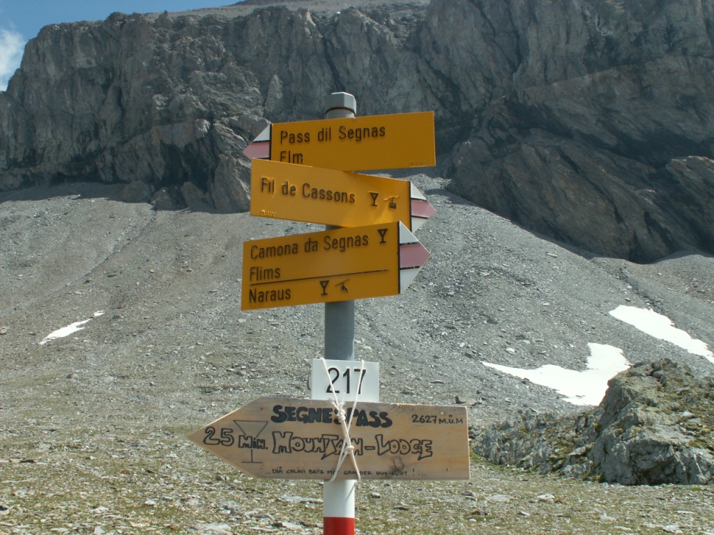 Wegweiser bei Muletg da Sterls 2465 m.ü.M. Von hier aus ist es möglich zum Cassons Grat zu wandern