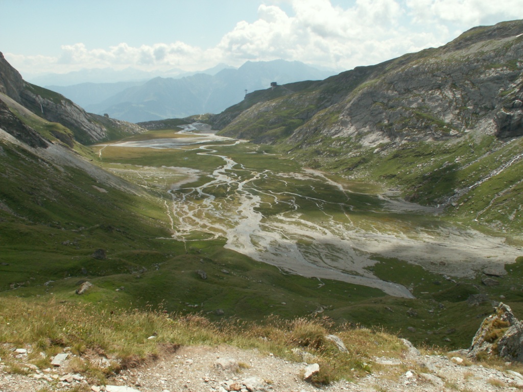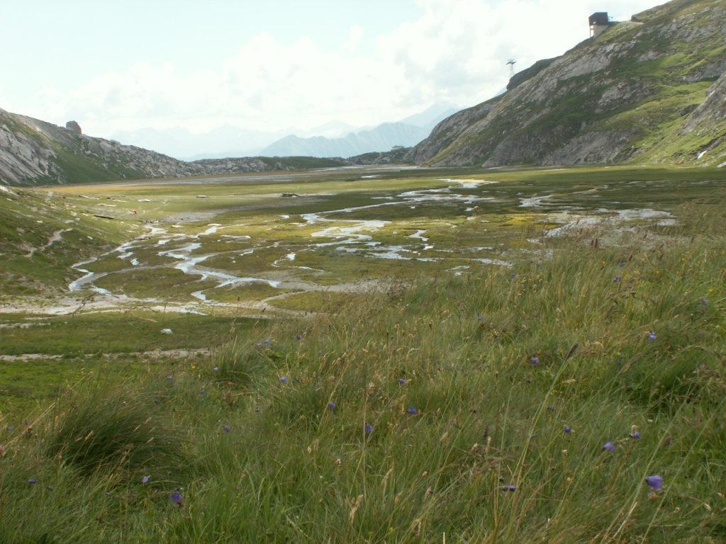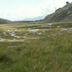 Plaun Segnas Sut eine Hochebene mit vielen, wild mäandrierenden Bächen. In der Schweiz heute selten geworden