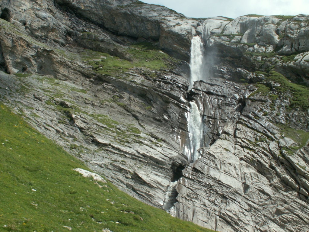 bei Punkt 2096 m.ü.M. ein gewaltiger Wasserfall gespiessen vom Wasser der Plaun Segans Sura