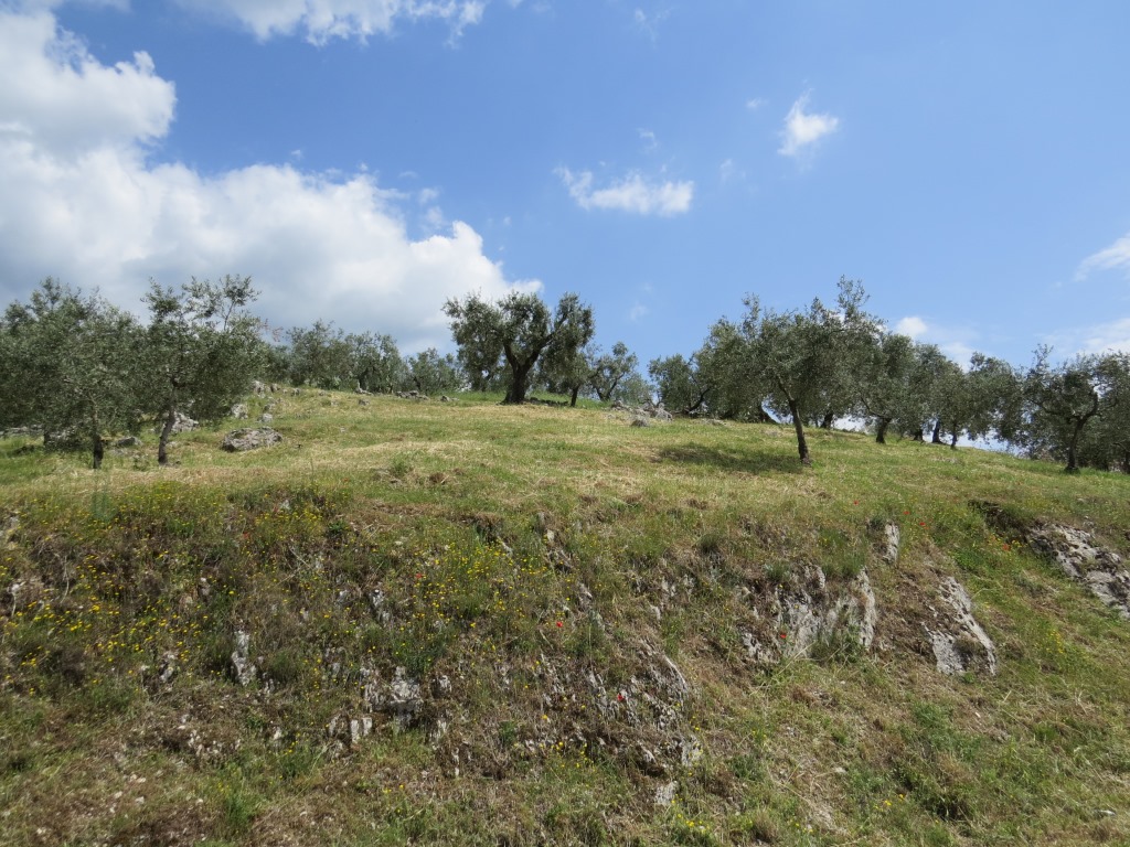 vor uns Olivenbäume und Cori
