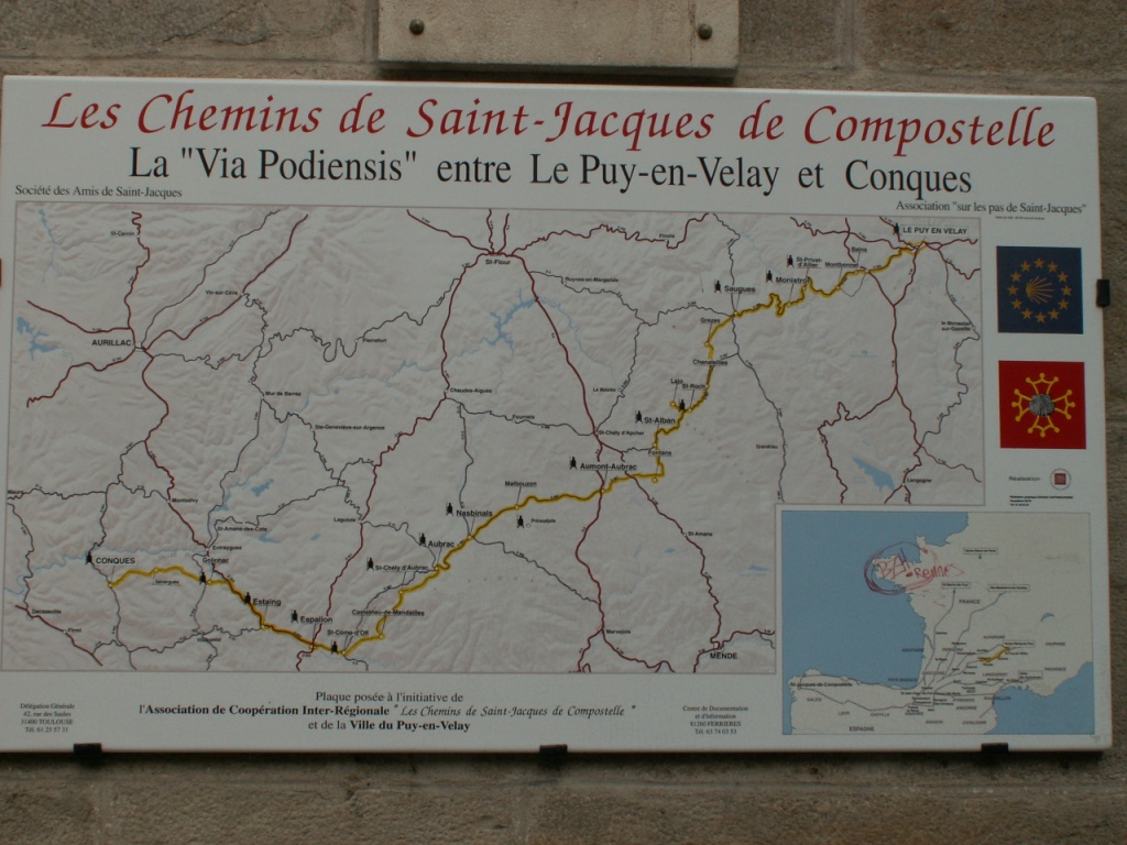 Tafel der Via Podiensis von Le Puy en Velay nach Conques Datum 23.06.2009