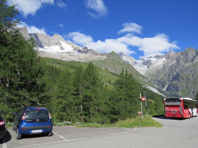 mit Blick auf Mont Dolent, Aiguille de l'A Neuve und Glacier du Dolent und l'A Neuve, parkieren wir unser Auto