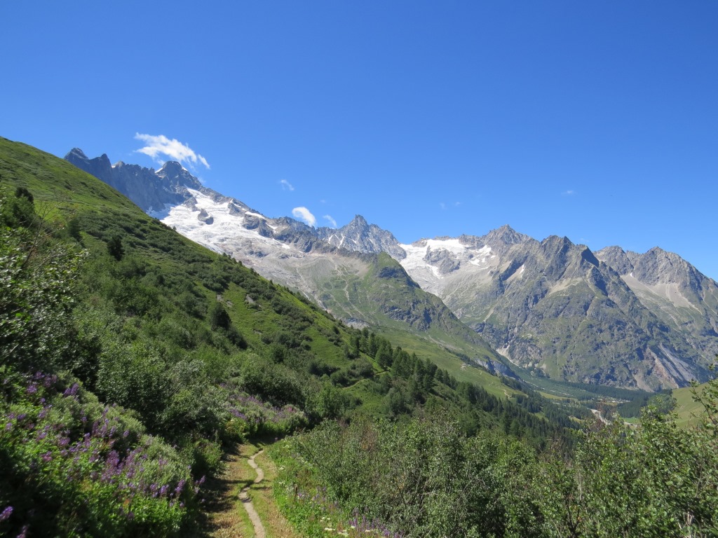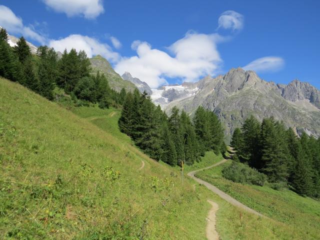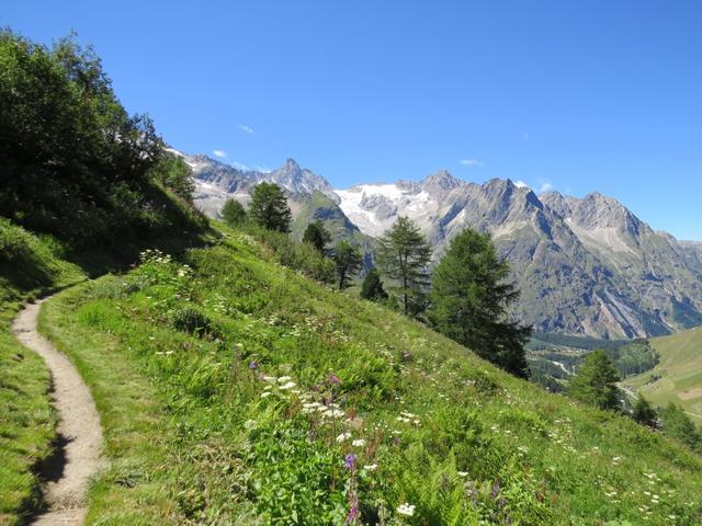 während dem Abstieg geniessen wir die Aussicht ins Val Ferret und zum Monts Telliers