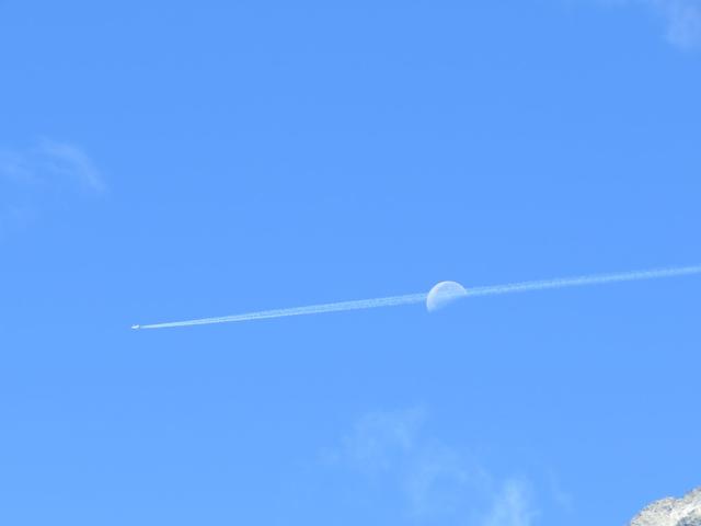 ein Flugzeug fliegt durch den Mond hindurch