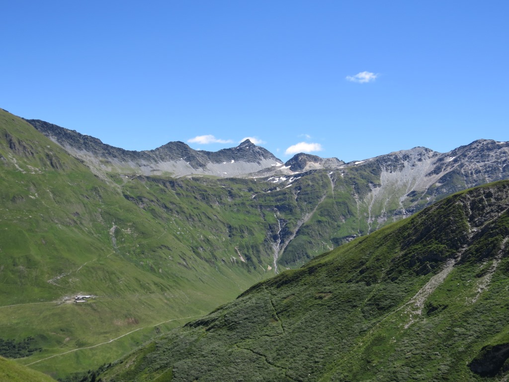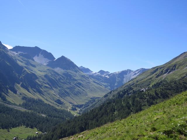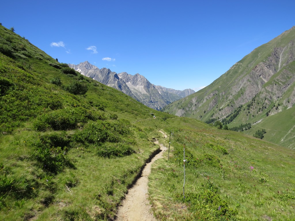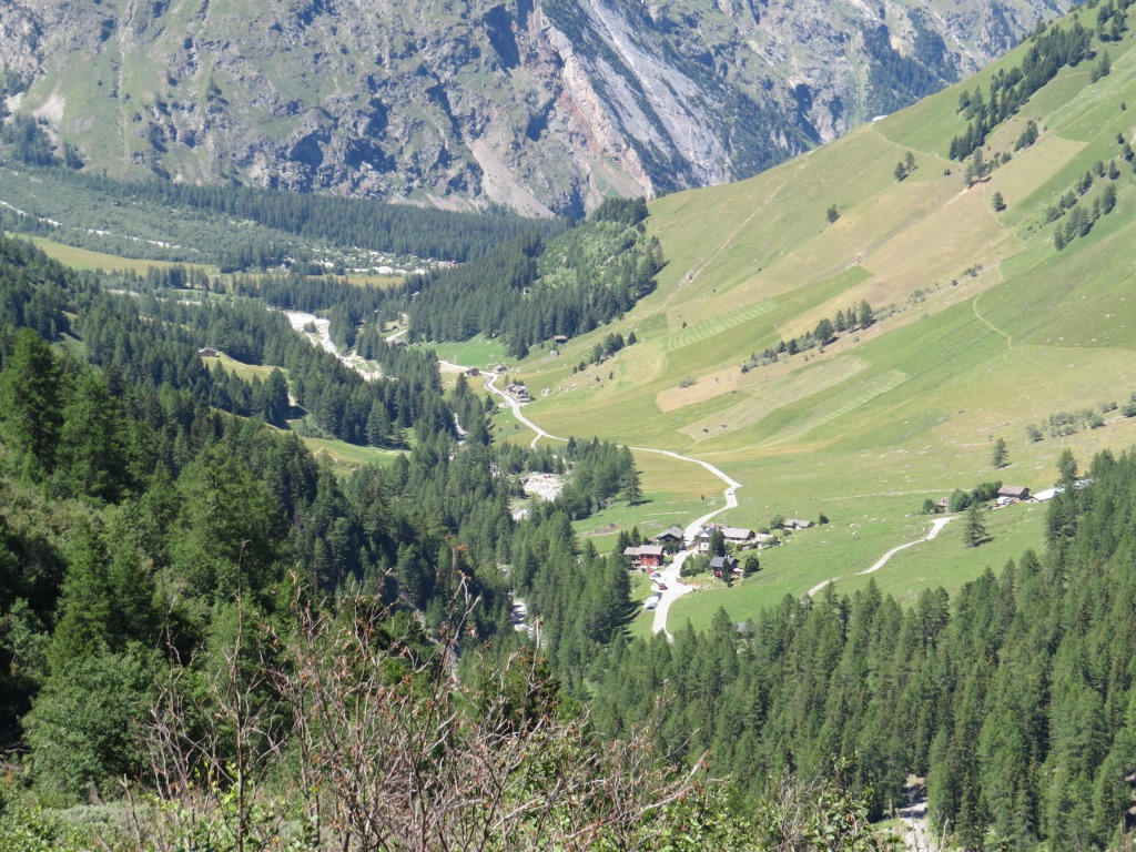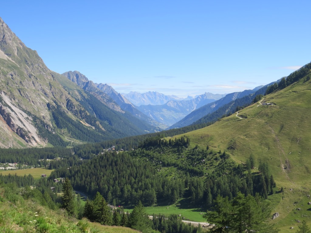 Blick ins Talende des Val Ferret und Richtung Lacs de Fenêtre. ( Die haben wir unterdessen auch schon besucht)