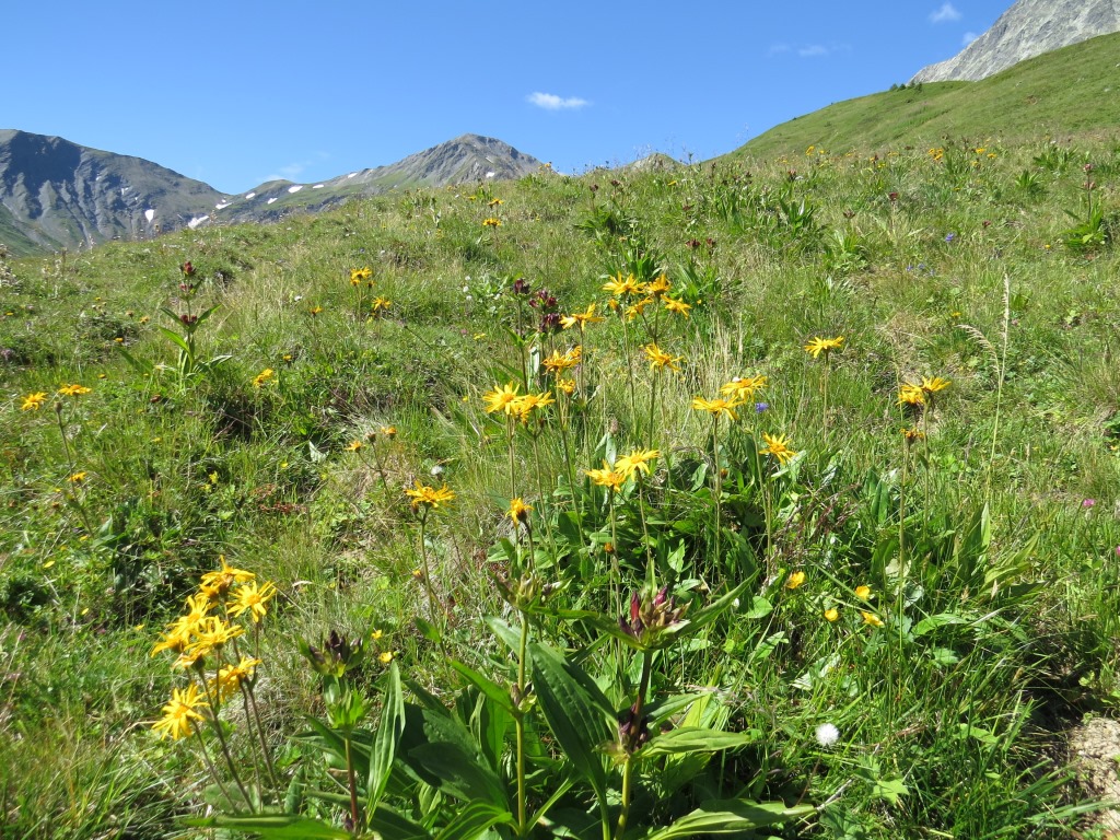 der ganze Berghang ist übersät mit Arnika