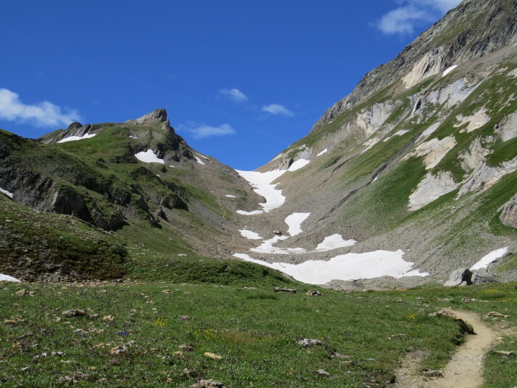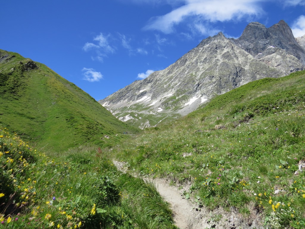 bei Punkt 2144 m.ü.M. geht es danach rechts in das kleine Tälchen von Taves du Dolent