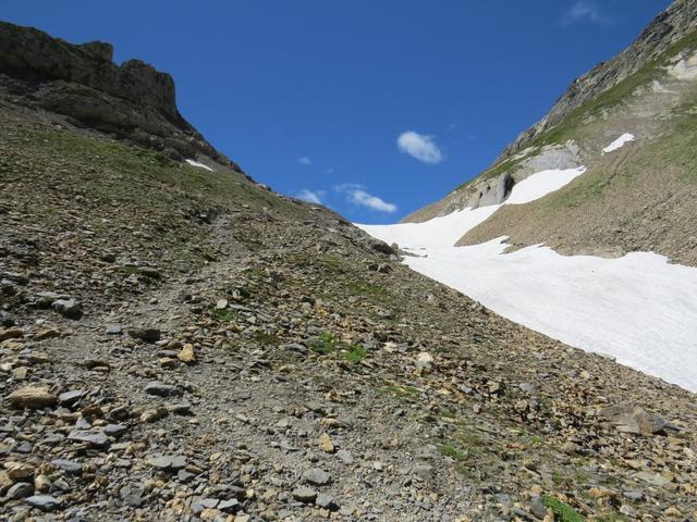 teils über Altschneefelder, teils über Geröll...