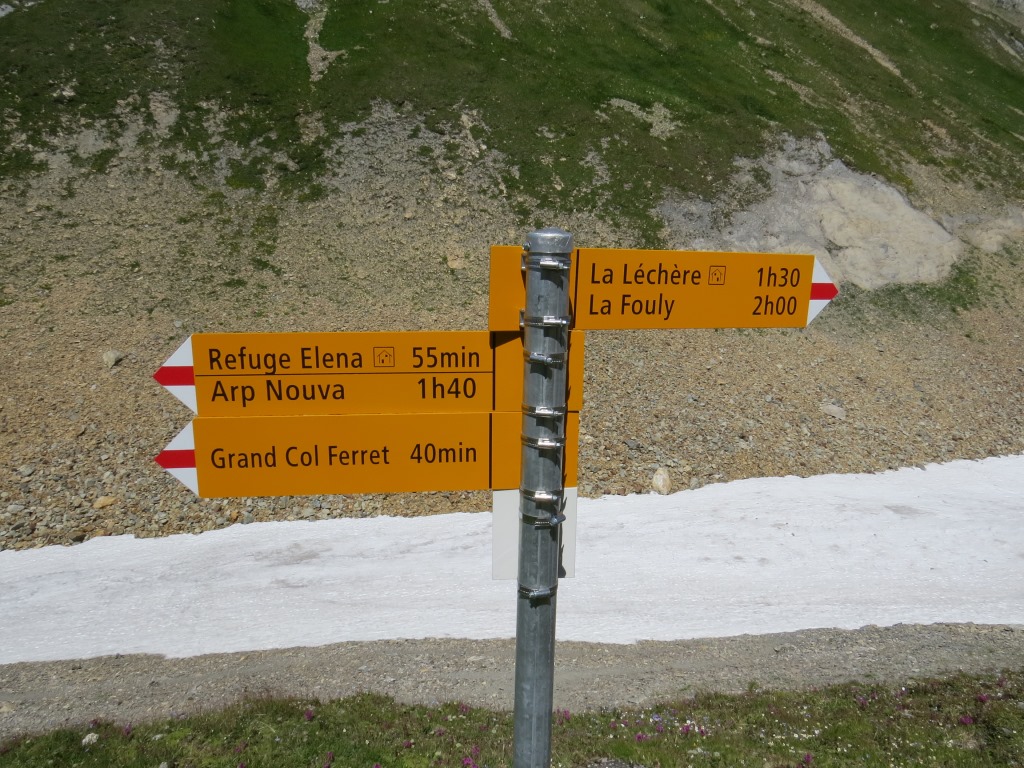 Wegweiser beim Petit Col Ferret 2490 m.ü.M.