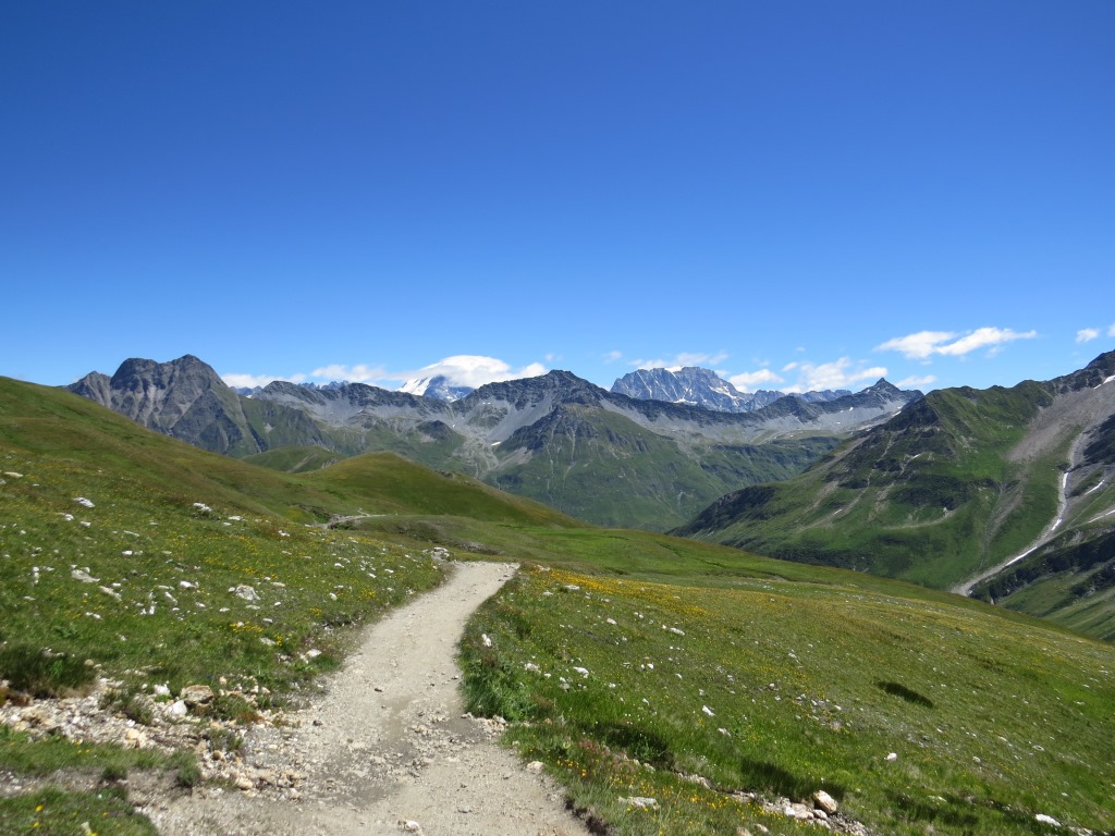 am Horizont sind Grand Combin mit Wolkenhaube und der Mont Vélan ersichtlich