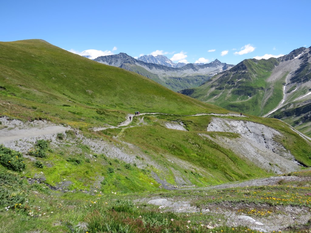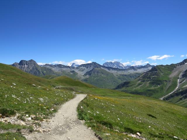 mit Blick auf Grand Combin und Mont Vélan nehmen wir nach einer kurzen Pause den Abstieg unter die Füsse