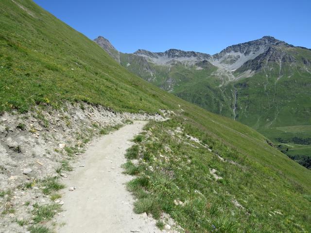 der weiterhin gut ersichtliche Wanderweg, führt uns nun leicht aufsteigend unterhalb des Le Chantonnet...