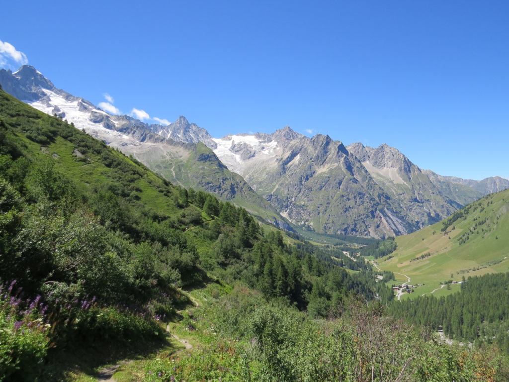 Blick ins italienische Val Ferret. Courmayeur sieht man von hier aus nicht