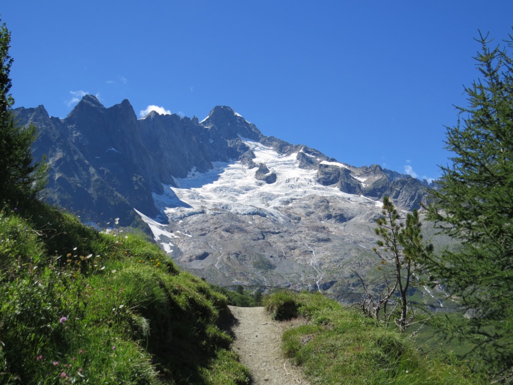 Blick hinauf zum Triolet, Mont Dolent und Glacier de Pré de Bard