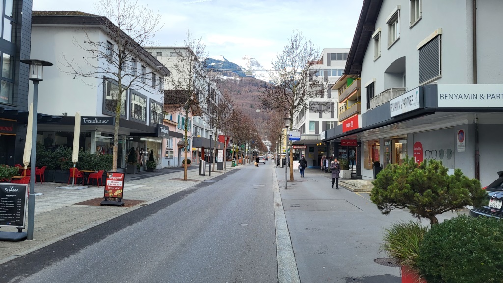 bei der Einkaufsmeile von Buchs starten wir die heutige Etappe
