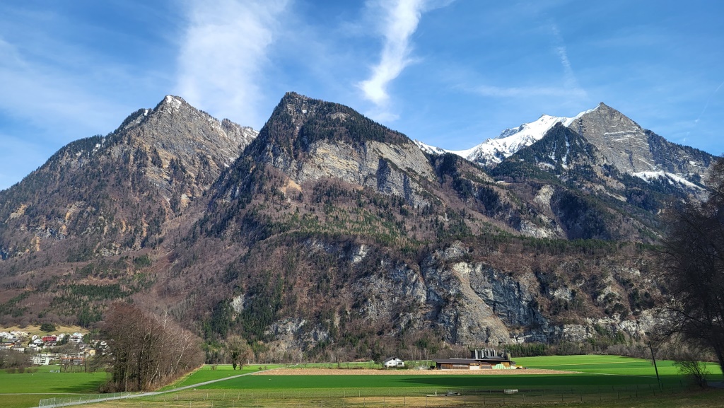 noch einmal blicken wir zurück nach Balzers. Dahinter erhebt sich der schneebedeckte Girenspitz