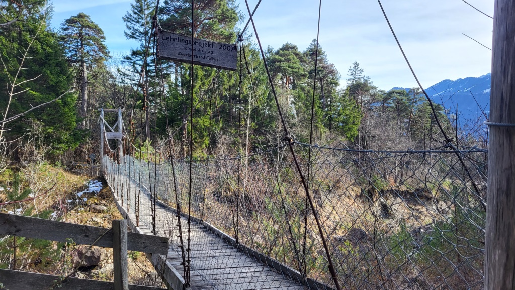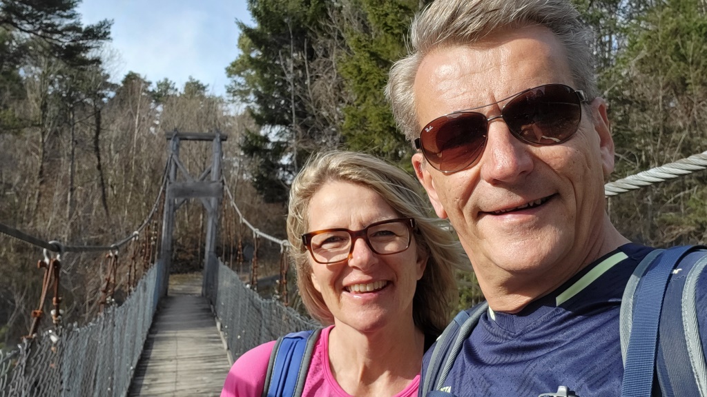 über eine Hängebrücke, gelangen wir in den Steigwald