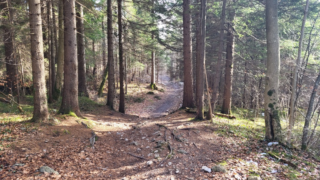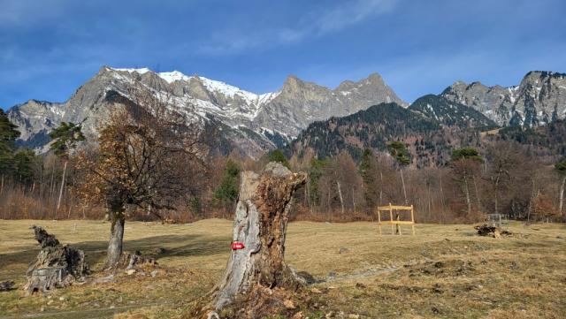 beim Römersteig verlassen wir den Steigwald und blicken nochmals hinauf zum Falknis