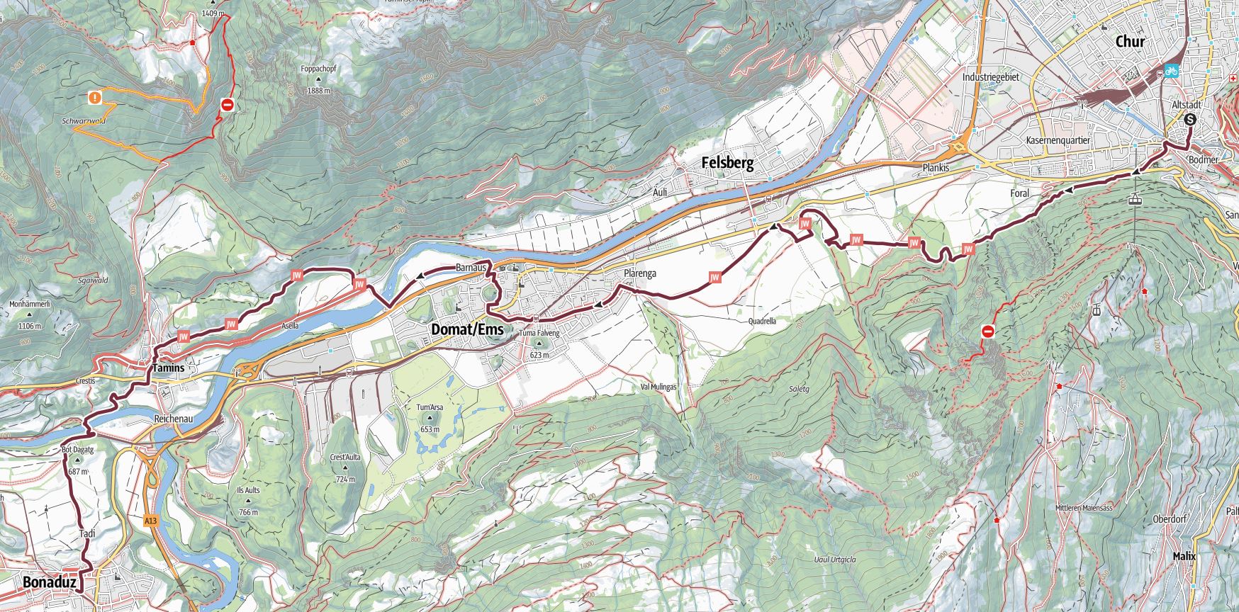 wir erreichen das nun im Schatten liegende Bonaduz. Eine sehr schöne Etappe geht zu Ende