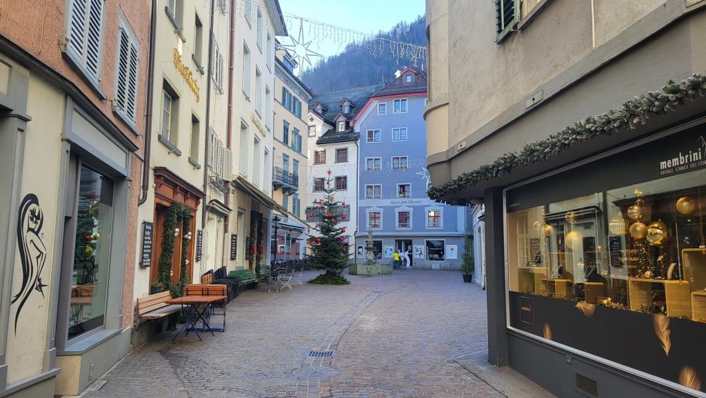 wir verlassen das Kaffee Klatsch und durchqueren die Altstadt von Chur