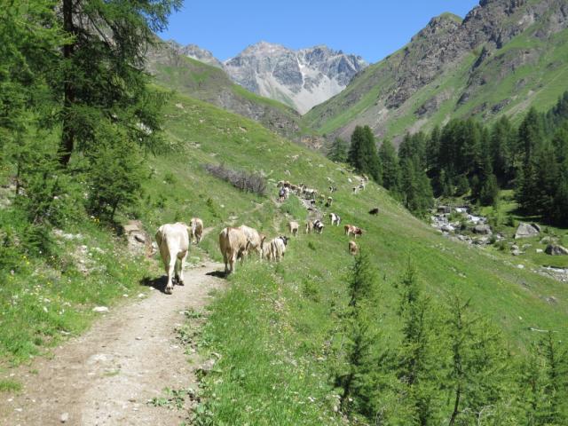 nicht nur wir, sondern auch hunderte von Kühen, laufen taleinwärts