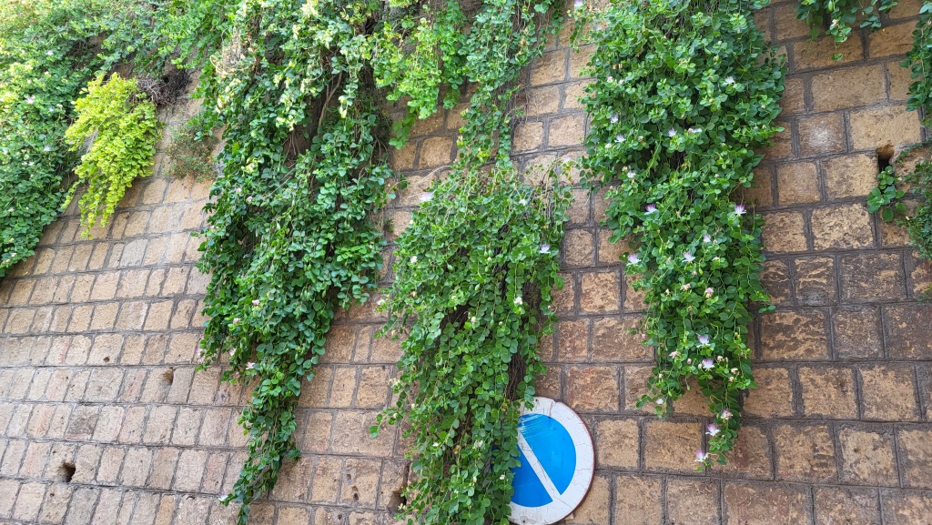 an der Mauser der herzoglichen Burg, hängen grosse Kapernsträucher
