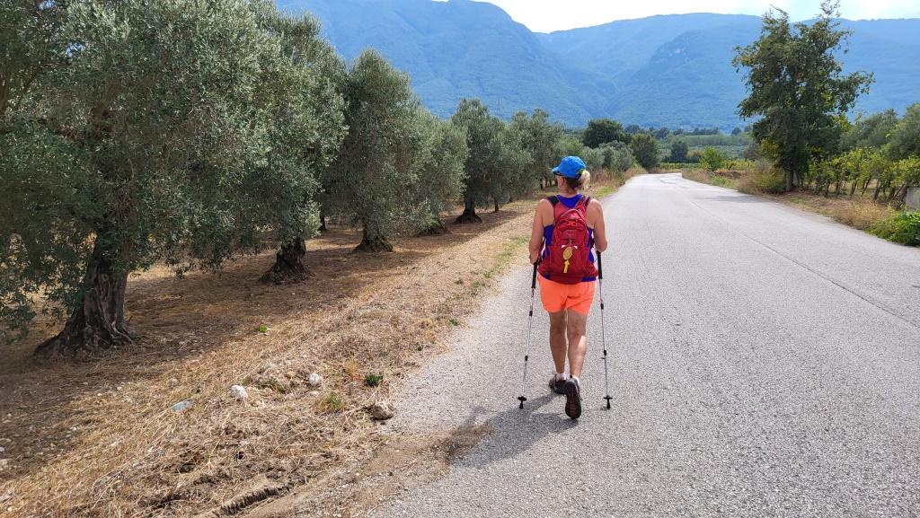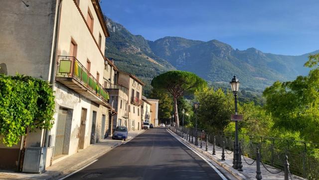 wir lassen die Burg hinter uns und laufen auf der Strasse das uns von Faicchio herausführt