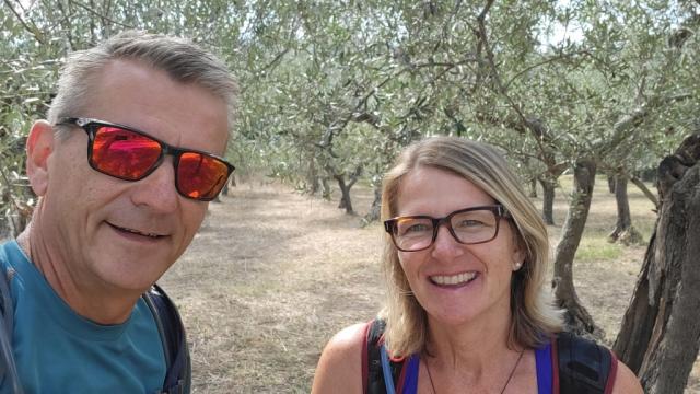 Erinnerungsfoto aufgenommen zwischen Olivenbäume
