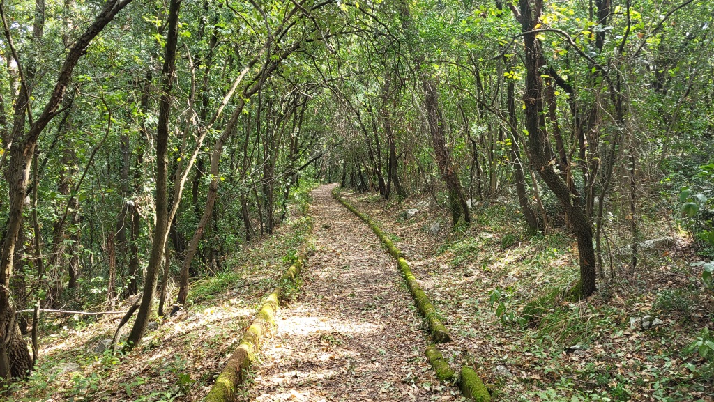 der schön ausgebaute Waldweg führt uns durch einen dichten Steineichenwald