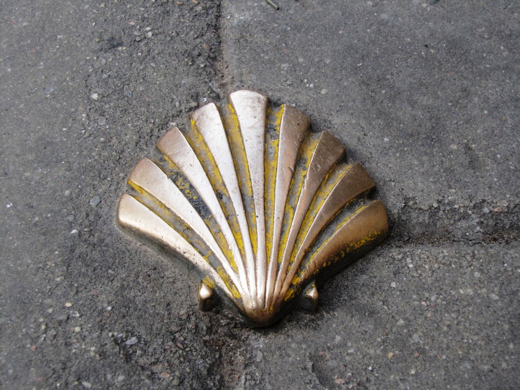 die im Boden eingelassen Muschel, zeigt uns der Weg