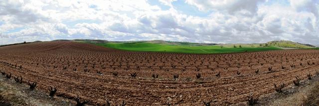 Breitbildfoto mit Blick auf die ausgedehnte Ebene der Rioja Alta