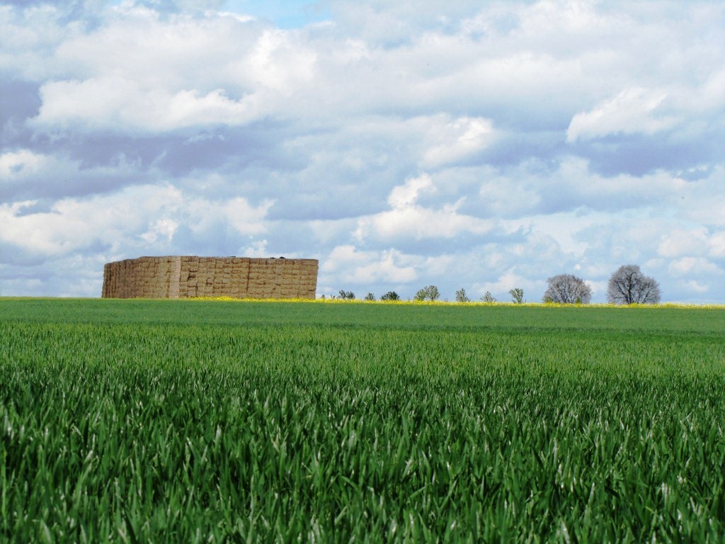 das ist kein Haus. Unzählige Strohballen werden zu einem riesigen Haufen aufgetürmt
