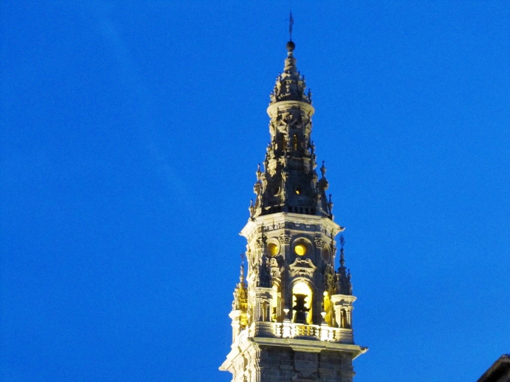 auf der Plaza del Santo. Blick zur Kathedrale und der sehr schöne Kirchturm
