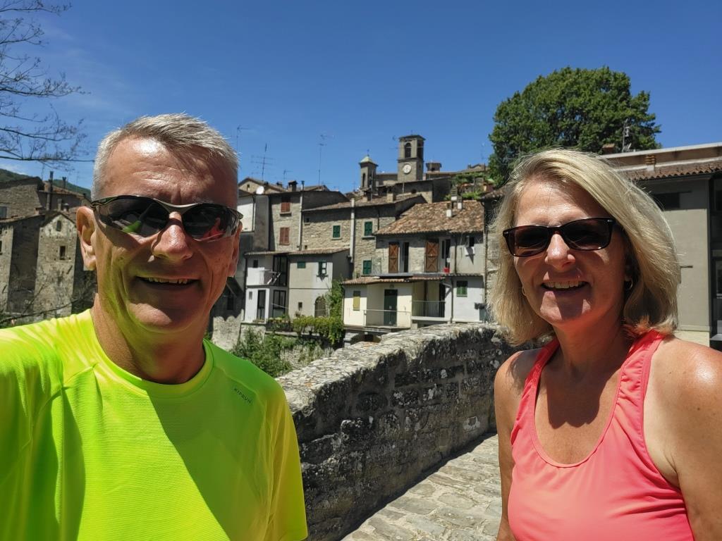 über eine Brücke die den Fluss Montone überspannt, verlassen wir Rocca San Casciano