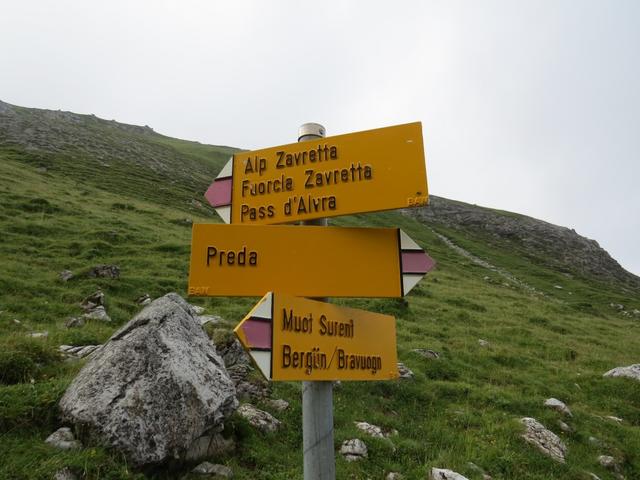 Wegweiser auf der Fuorcla Zavretta Datum 23.12.2017