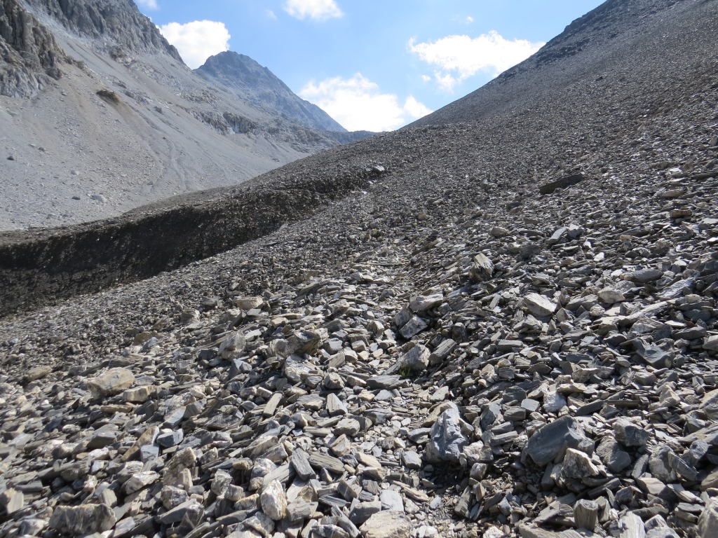 das Geröll des Blais Arduonda erreicht fast den Wanderweg Datum 27.12.2017