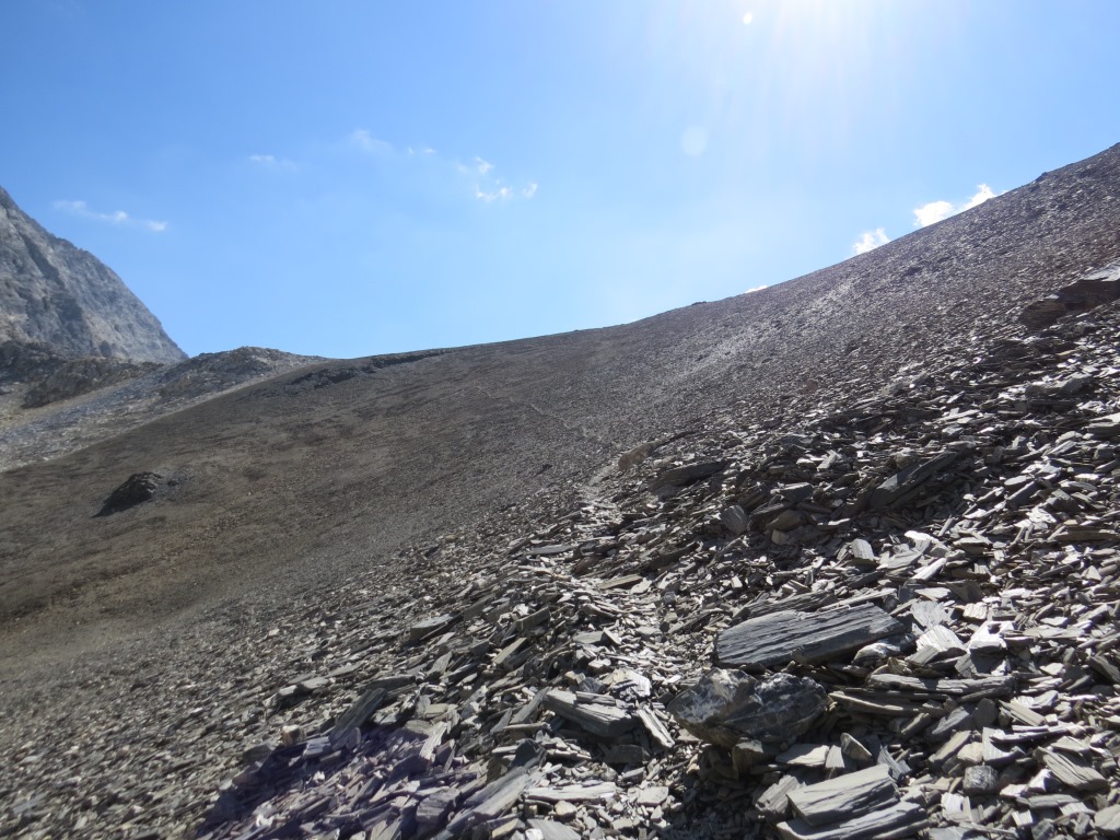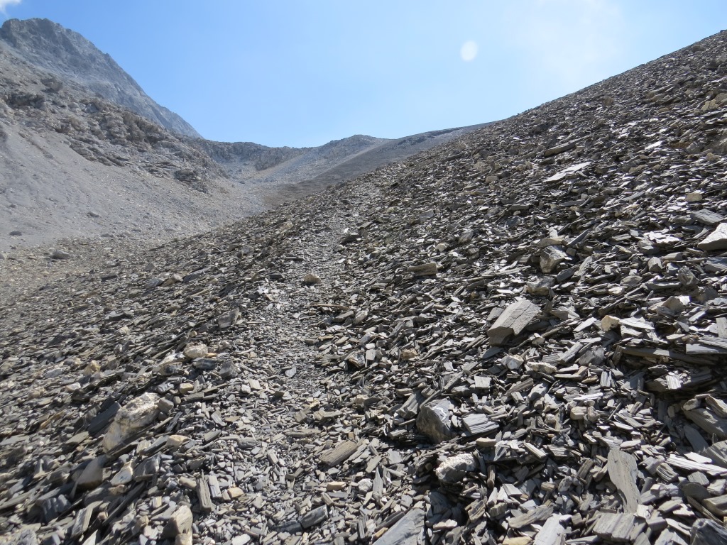 über feines Geröll verlieren wir weiter rasch an Höhe Datum 27.12.2017