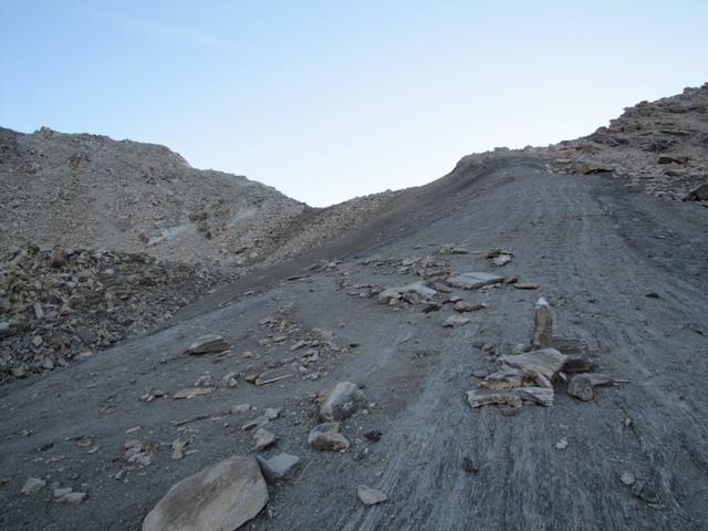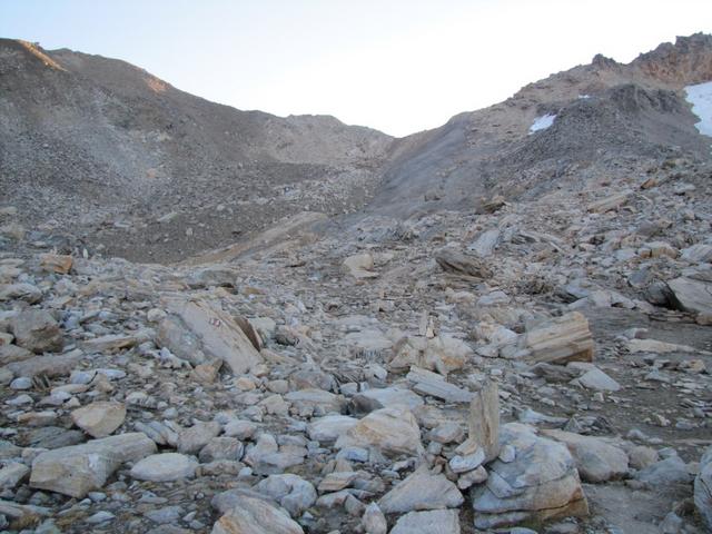 die Einsattelung die man von hier aus sieht, ist nicht der eigentliche Pass. Der befindet sich links davon