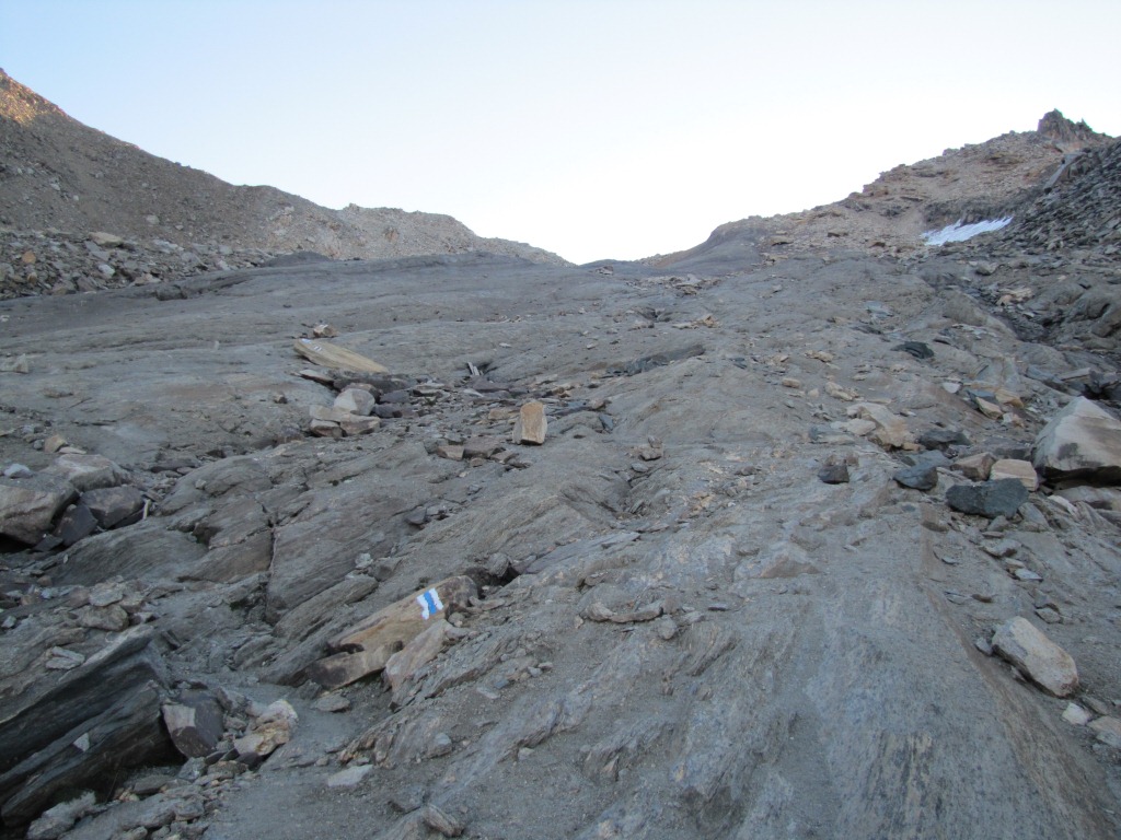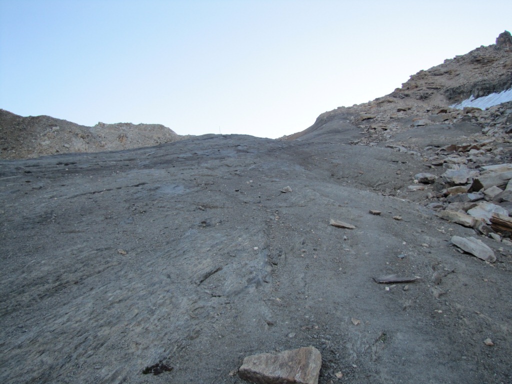 über einen grauen, glattgeschliffenen Schieferrücken, führt der Weg aufwärts